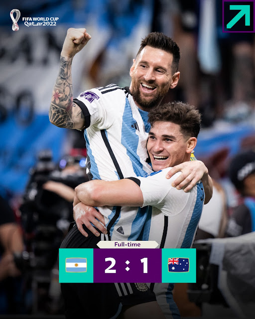 Na segunda etapa, Julián Álvarez aproveitou um erro do goleiro Matt Ryan, que tentou sair driblando a linha ofensiva argentina, para ampliar a vantagem. Depois, Craig Goodwin ainda conseguiu diminuir para a Austrália em um chute de longa distância desviado por Enzo Fernández.
